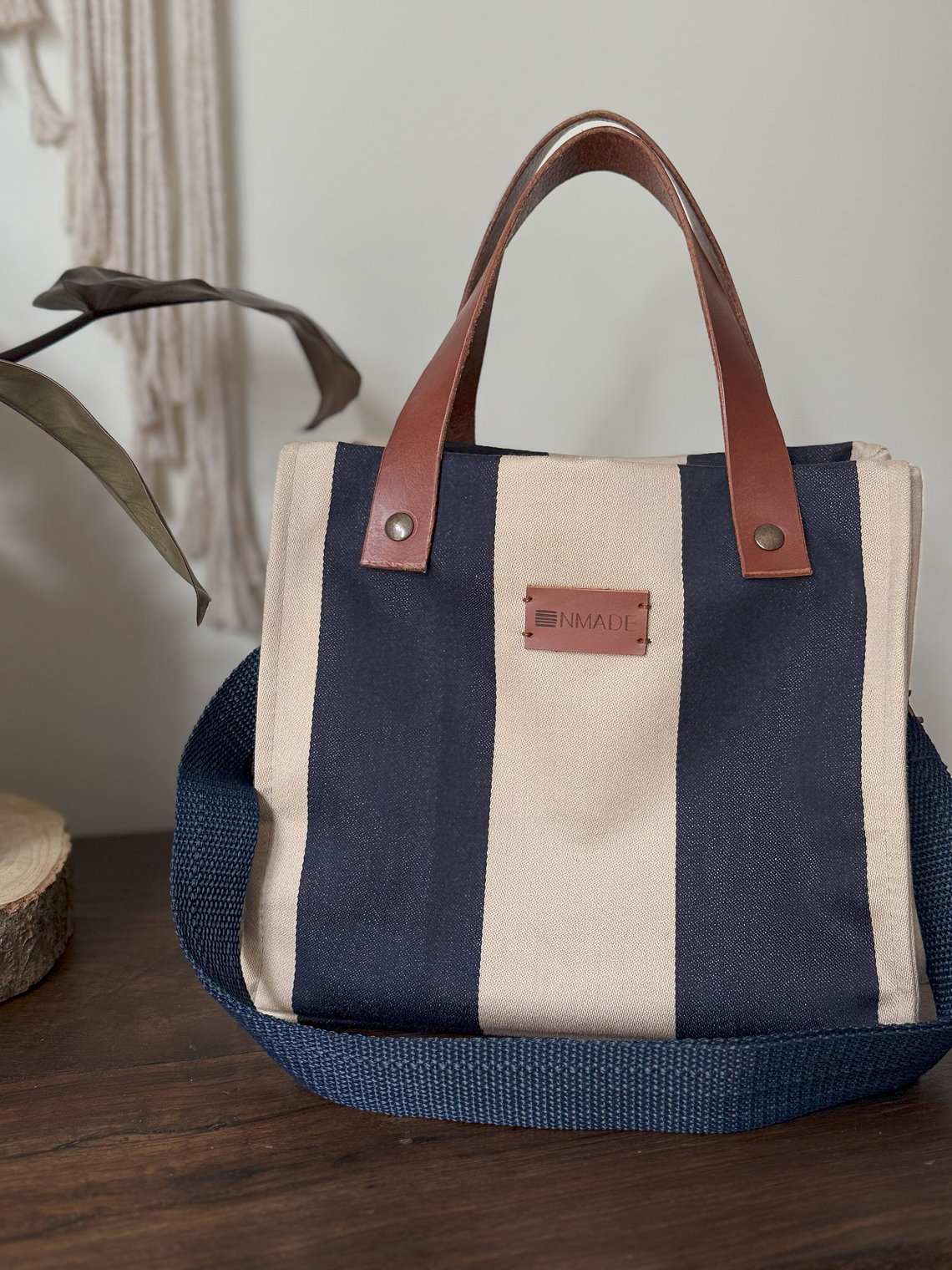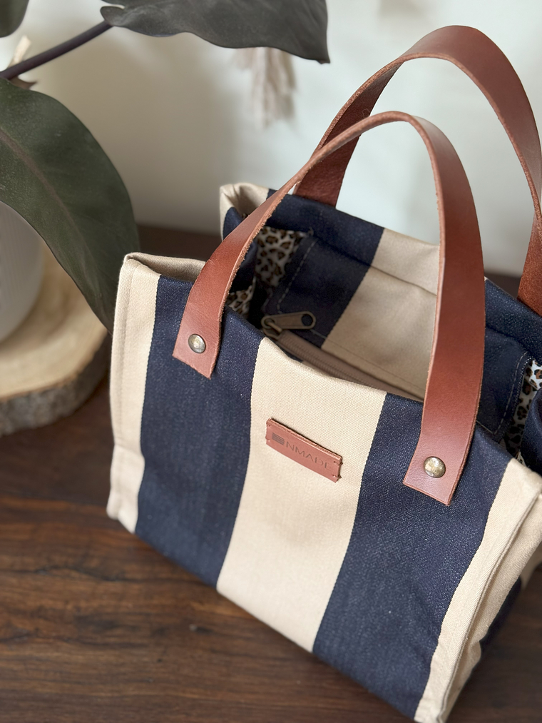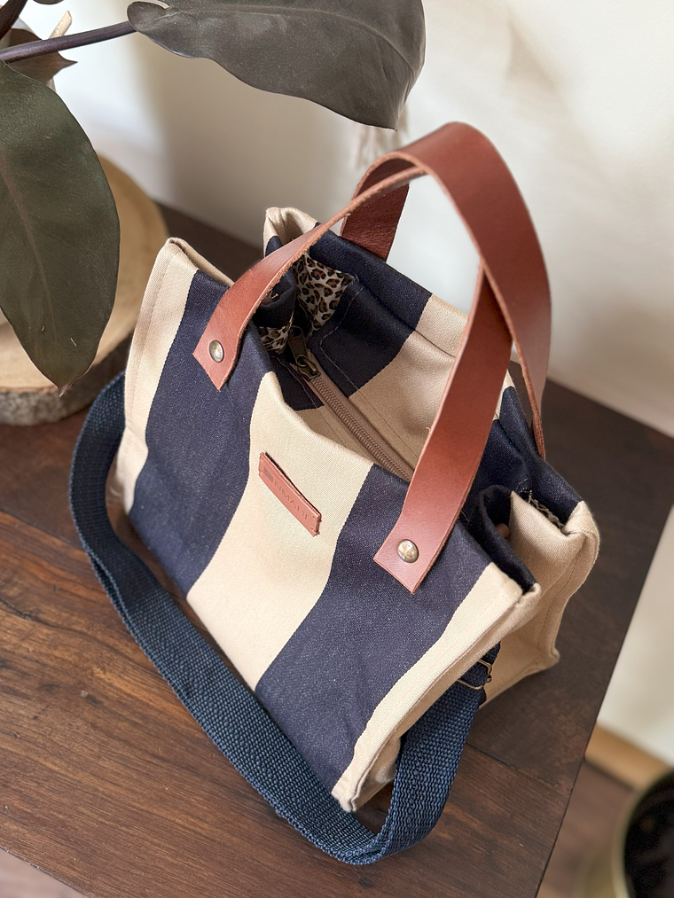 * Alças duplas em pele e alça amovível em precinta de algodão para uso a tiracolo ou ombro