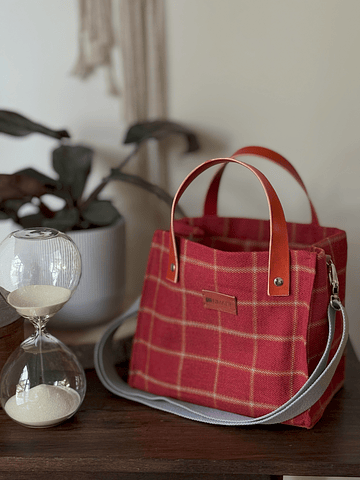* Alças duplas em pele e alça amovível em precinta de algodão para uso a tiracolo ou ombro