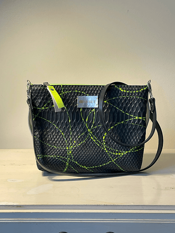 * Alças duplas em pele e bolso interior